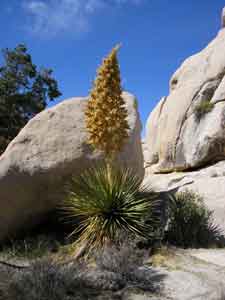 ![]() The Joshua tree, is a giant member of the lily family. Like the California fan palm, it is a flowering plant. We missed the flowering stage, in late February. I have seen pictures of the flower, it is beautiful. The trees were used by the American Indians for making baskets, sandals, and toasted/raw seeds made a healthy diet. In the mid 19th century, Mormons named the tree after the biblical figure, seeing the limbs of the tree outstretched in supplication, guiding the travelers westward. The tallest Joshua tree in the park looms a whopping forty feet high, a grand presence in the Queen Valley forest; it is estimated to be about 300 years old! These "trees" do not have growth rings like you would find in an oak or pine. This makes aging difficult, but you can divide the height of a Joshua tree by the average annual growth of one-half inch to get a rough estimate.
