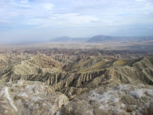 ![]() This is the badlands of Anza-Borrego Desert State Park. It is the erosion of sand stone into spires and peaks. |