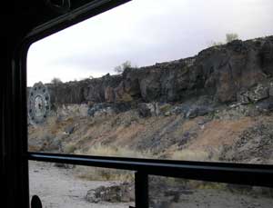 are parked next to a lava ledge on our left. |