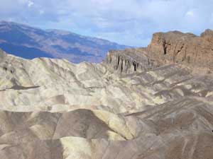 ![]() Zabrinskie Point is a Maze of eroded colored badlands. The name "badlands" is to be used lightly. There is nothing you could use this land for. You cannot drive on it and do not want to be caught here if it rains because it is all clay. |