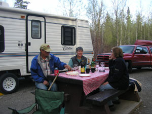 We had stayed at the Pioneer RV Park just outside of Whitehorse and they were very good to us. They have nice wooded section above and another section of parking without trees in front of the highway, below. They had sent us to see the "Frantic Follies" for free. This was a complete performance rehearsal prior to the grand opening.
