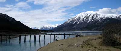 to Whitehorse. Here you see the old train station and docks on the river, which is also the headwaters of the Yukon river. Next is a picture of the White Pass Railway bridge |