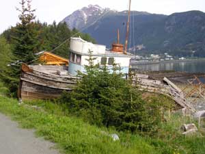 Saldovia was a busy, thriving town in 1898 with many stores, a modern hospital, good schools and Russian Orthodox and Methodist churches. The Alaska Steamship Company made regular stops with freight, mail and passengers. Before the Sterling highway linked Homer with the rest of the world, Seldovia was the main town in this area and one of the country's busiest seaports. Now, due in part to the 1964 earthquake and changes in the fisheries & transportation systems, Seldovia is a quiet little village. They have a annual Chain Saw Carving Contest. Summer Solstice Music Festival and a 4th. of July Parade, pancake breakfast, and rubber ducky race. |