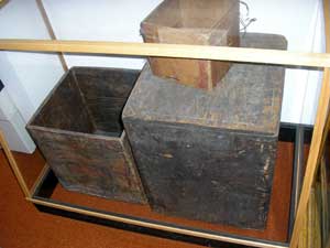 ![]() The Sheldon Museum and Culture Center has a very good display of the Tlingit Culture showing how artistic and resourceful they were. These boxes are of one sheet with folded edges. Their blankets and baskets were beautiful. |