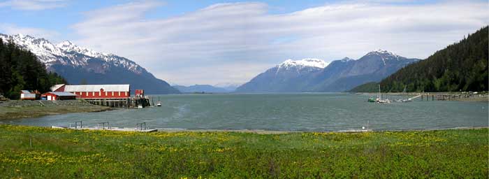 The first settler were the Tlingit Indians. In 1741, the first know meeting between white men and Tlingit took place when a Russian ship anchored west of Haines. A brisk fur trade began thereafter with the Spanish, English, Russians and Americans. Later cashing in on the gold-seekers Jack Dalton established a tool road along one of the Tlingit routes into the interior. Parts of the Dalton Trail eventually became the Haines Highway into Canada. |