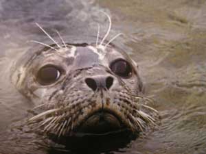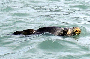 Schools of otters. They love to float on their backs. On the right, a close-up of an otter. |