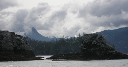 On the way to Saldovia we saw Islands full of different birds. |