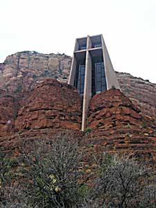 | Tuesday, March 28, 2006. As we wait for the clouds to clear before we first see the Grand Canyon, we visited Sedona and Jerome. It was raining and foggy most of the day. Sedona is such a beautiful "resort" City. Everywhere you look there is a picture due to the sheer read cliffs surrounding it. We will have to come back for better pictures. |