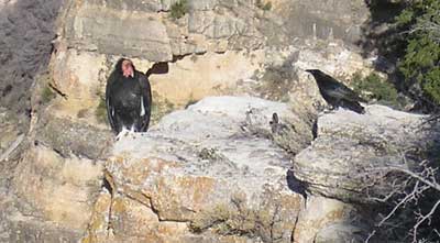 ![]() Denis took this picture of the Condor while sunbathing on a cliff in front of the hotel and the Raven dropped by for a visit. |