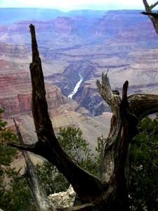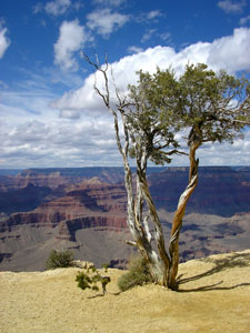 | Tuesday, April 4, 2006. Sadly we are leaving the Grand Canyon today. We believe everyone in their lifetime should visit. Just reserve lodging/flying a year in advance and fly down. You do not need a car when you are here because they provide free transportation. There is walking, hiking, sightseeing galore. It was also really nice to have electricity and hook-up to water for the first time since January while we were in Tucson for Christmas. It is nice to be a pig with water and heat. We are heading to Lipan Point (another part of the Grand Canyon but closed for camping) for tonight. Then we will head to Navajo Nation, Canyon de Chelly Monument. It looks like we will miss going to Zion and Bryce. Denis is determined to go this route. It will have to be another day. |