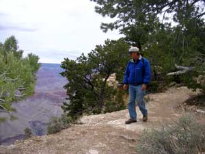 ![]() Denis on the path and very close to the edge. We are trying to show you how close our walking path is to the edge with a drop of 1 mile. |